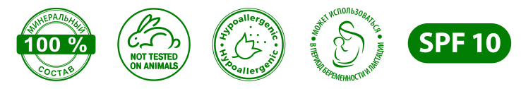 Мика (слюда), серицит, диоксид титана, нитрид бора, оксид цинка, оксид железа, цеолит.